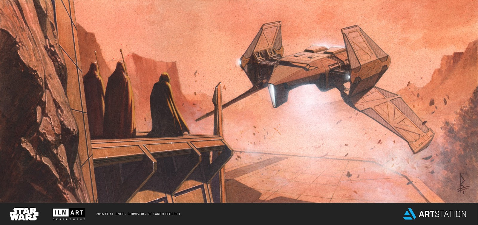 In questo album vi presento tutto il lavoro (tranne gli gli sketches da 4 soldi) che ho realizzato per un concorso sul tema Star Wars (IV, V, VI episodio) con la ILM Art Department dove ho avuto la fortuna di arrivare in finale e ottenere una menzione d'onore. Non ho vinto...ne mi sono aggiudicato il secondo e il terzo posto, ma sono arrivato quarto a parimerito con altri 4 "colleghi". Eravamo 3482 partecipanti in tutto il mondo....ed è stata dura affrontare le prove con scadenze strettissime mentre si portava avanti il lavoro di tutti i giorni (come tutti d'altronde).
